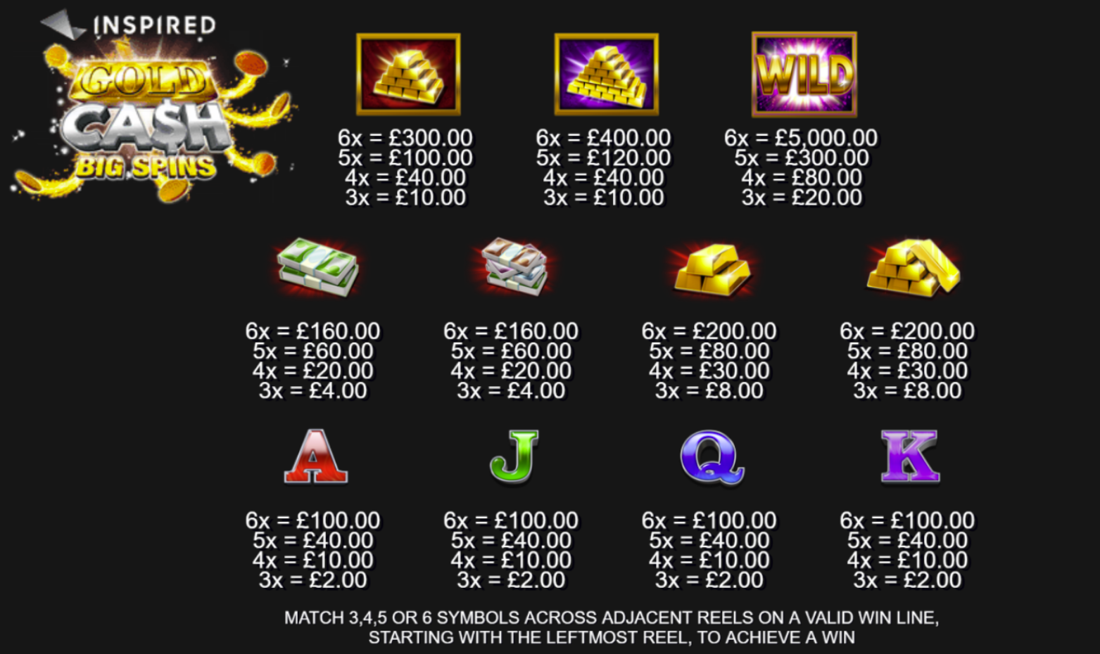 Gold Cash Freespins is a gold-themed video slot from Inspired Gaming, offered on platforms such as Admiral Casino. The game features a classic slot layout with 5 reels, multiple paylines, stacked wilds, free spins and a gamble feature all wrapped in a cash-and-gold aesthetic that emphasizes wealth and high payouts.